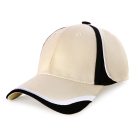 - Contrast piping and side panel design on the crown