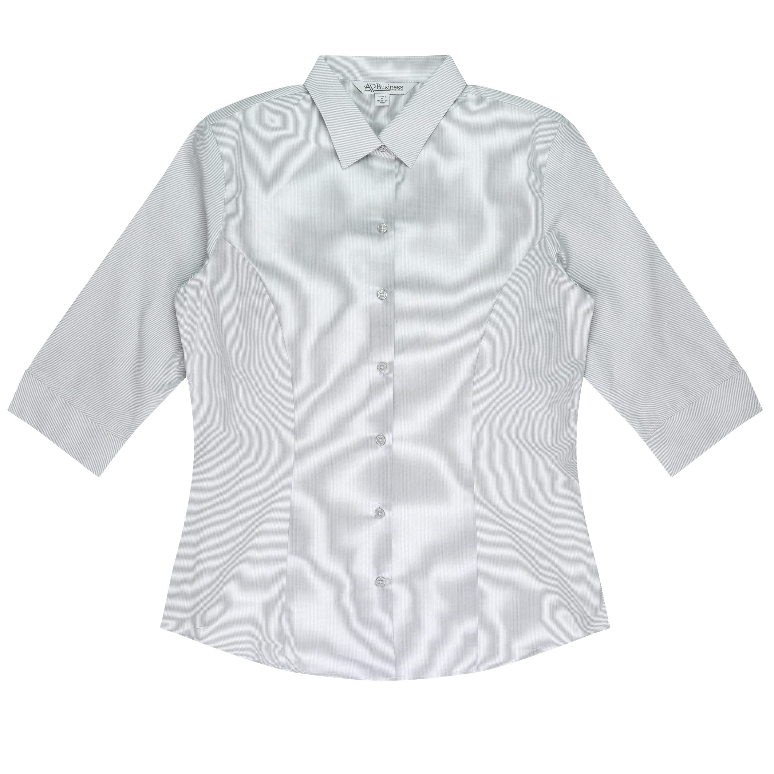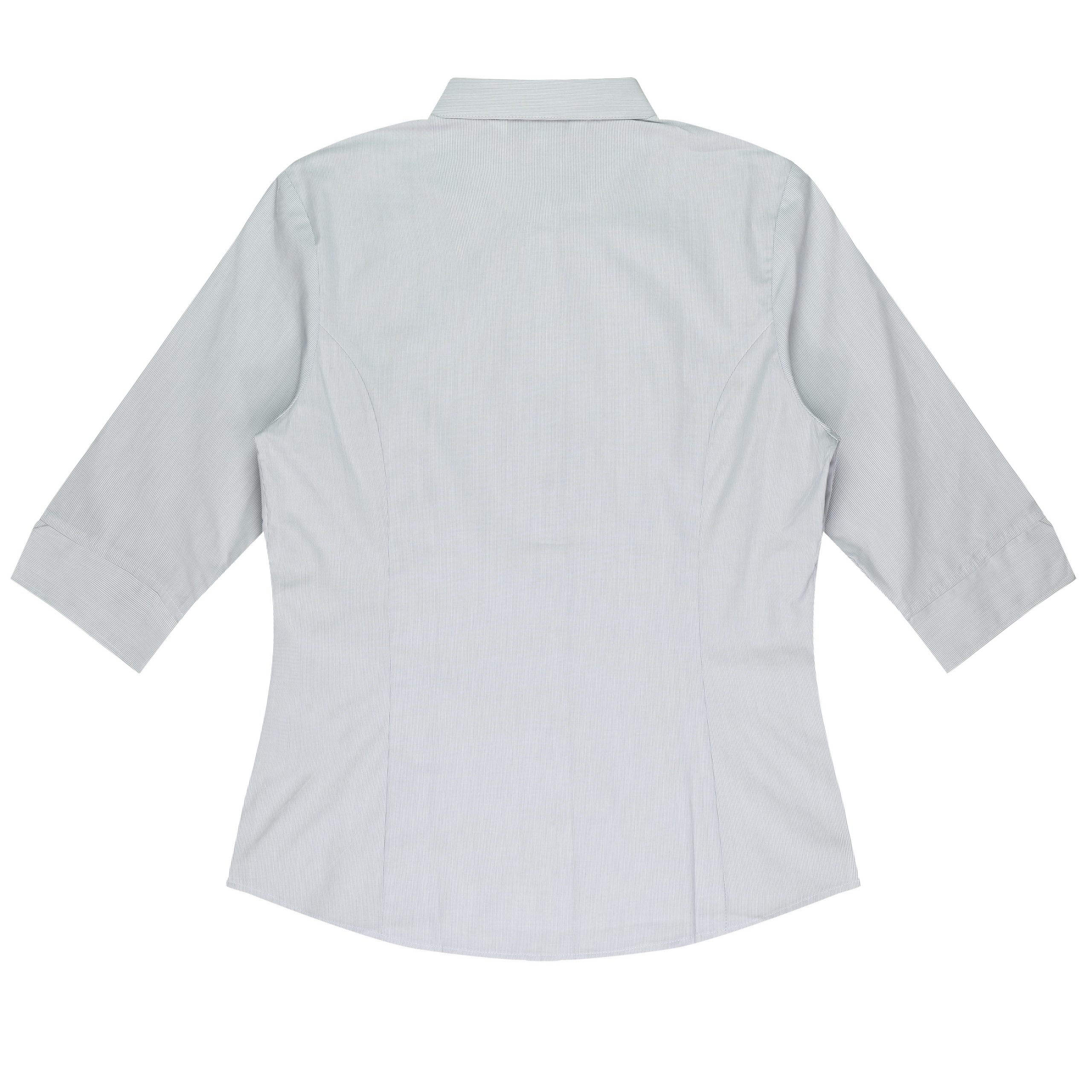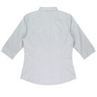 Below the double turned placket there is a hidden ‘Magic Button’, highlighting a ‘princess’ line front and back cut for a feminine flattering fit