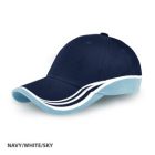 - Embroidered stripe and panel design on the peak and both sides