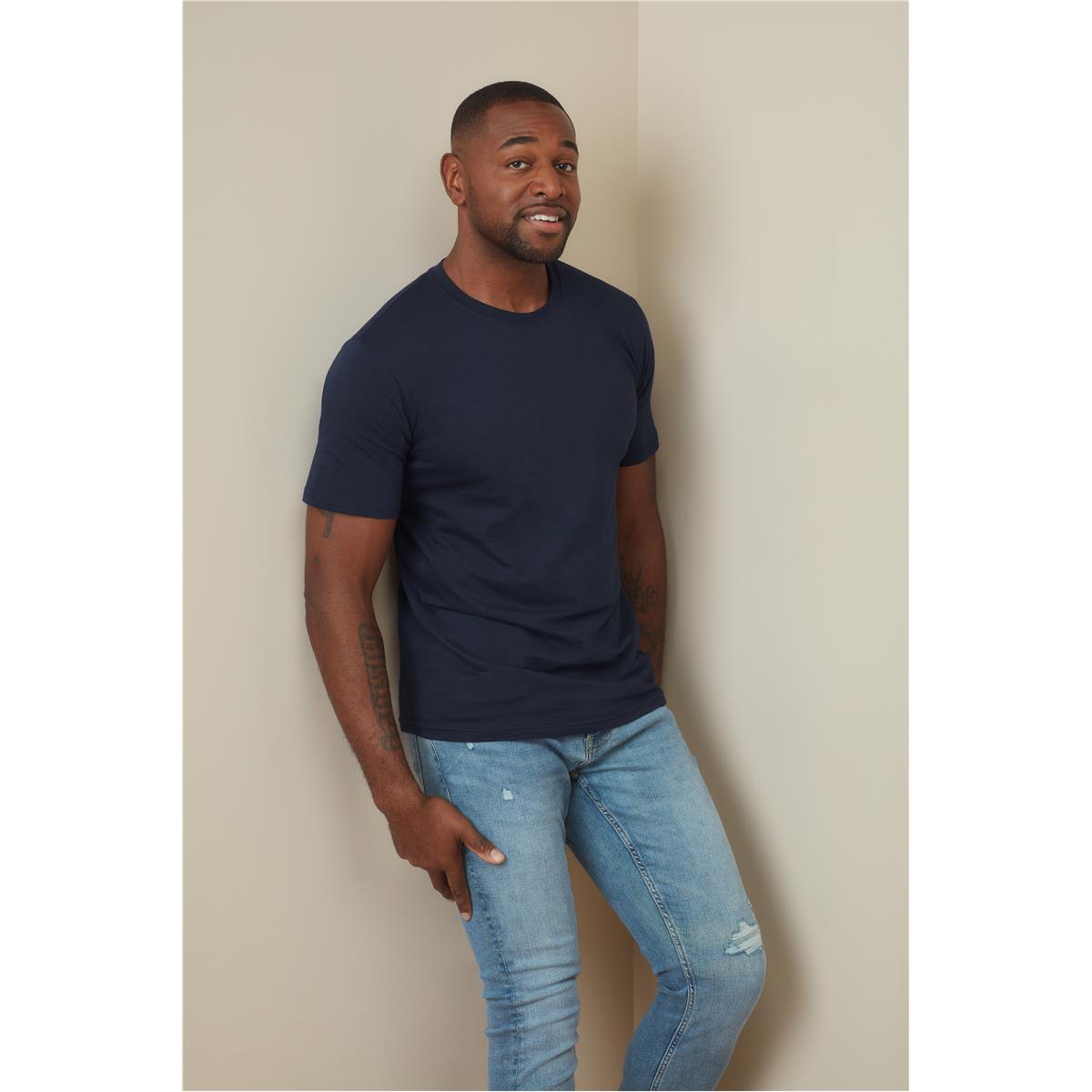 A slim cut T-shirt for men that’s soft and without side seams.