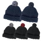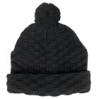 Woven pattern acrylic knit with cuff and pom pom