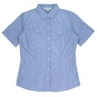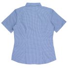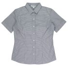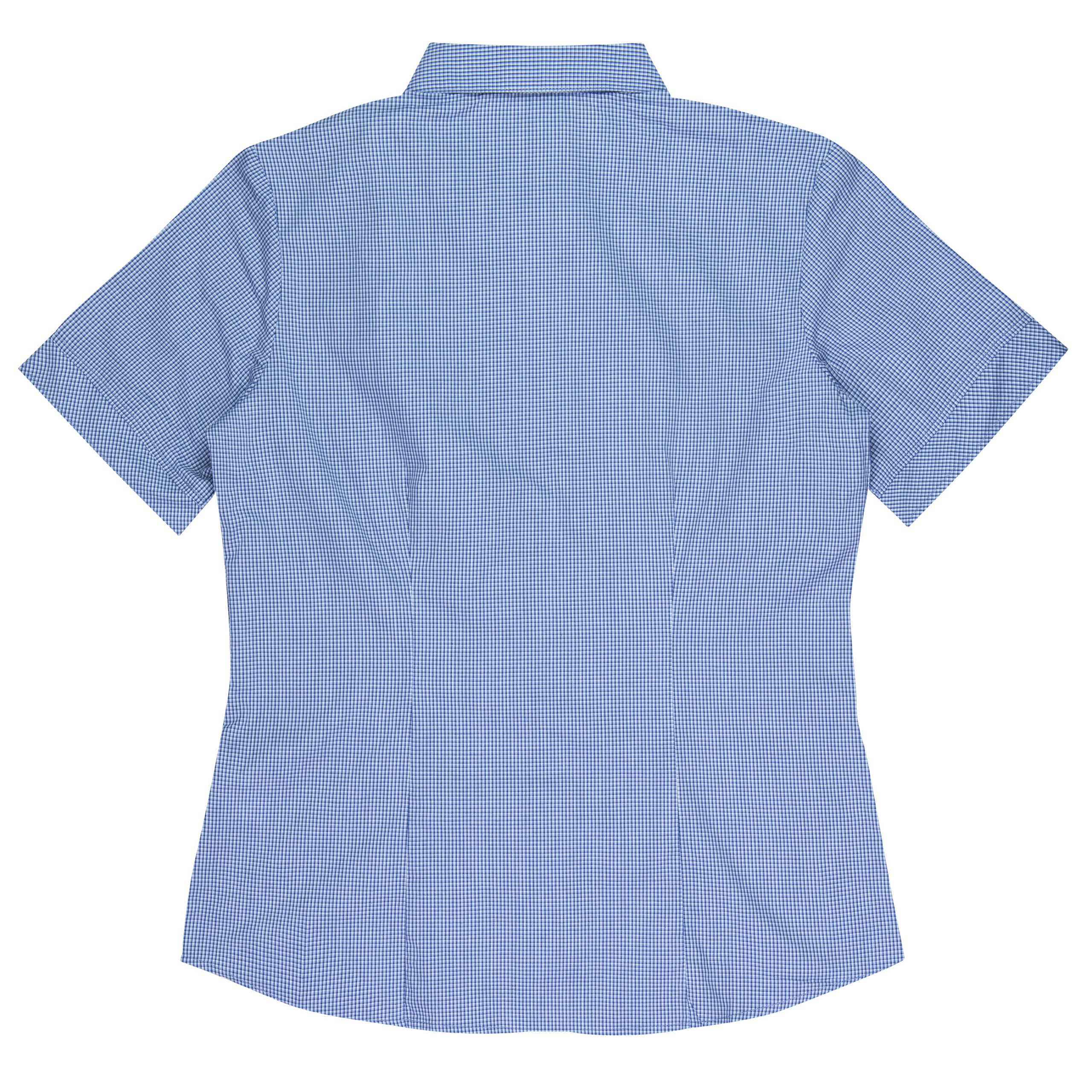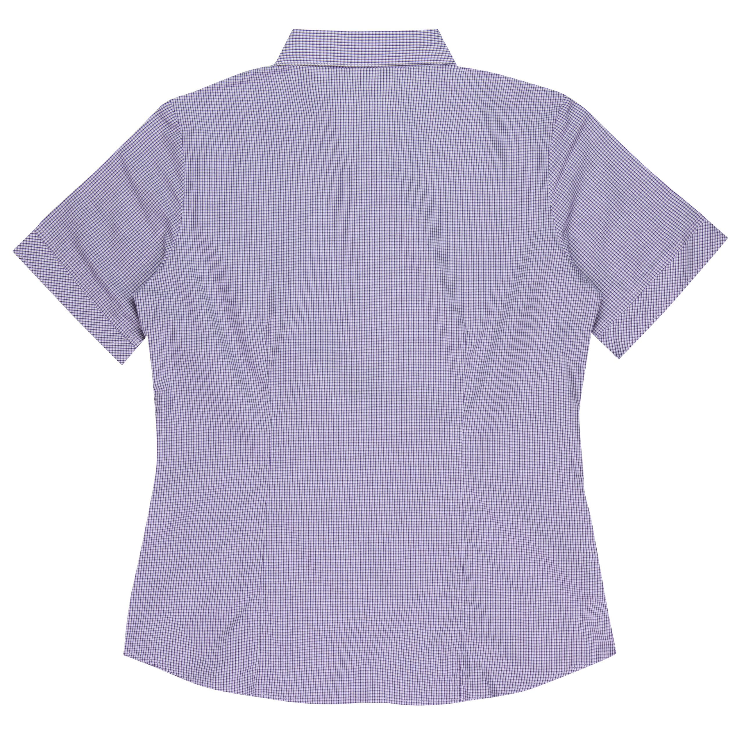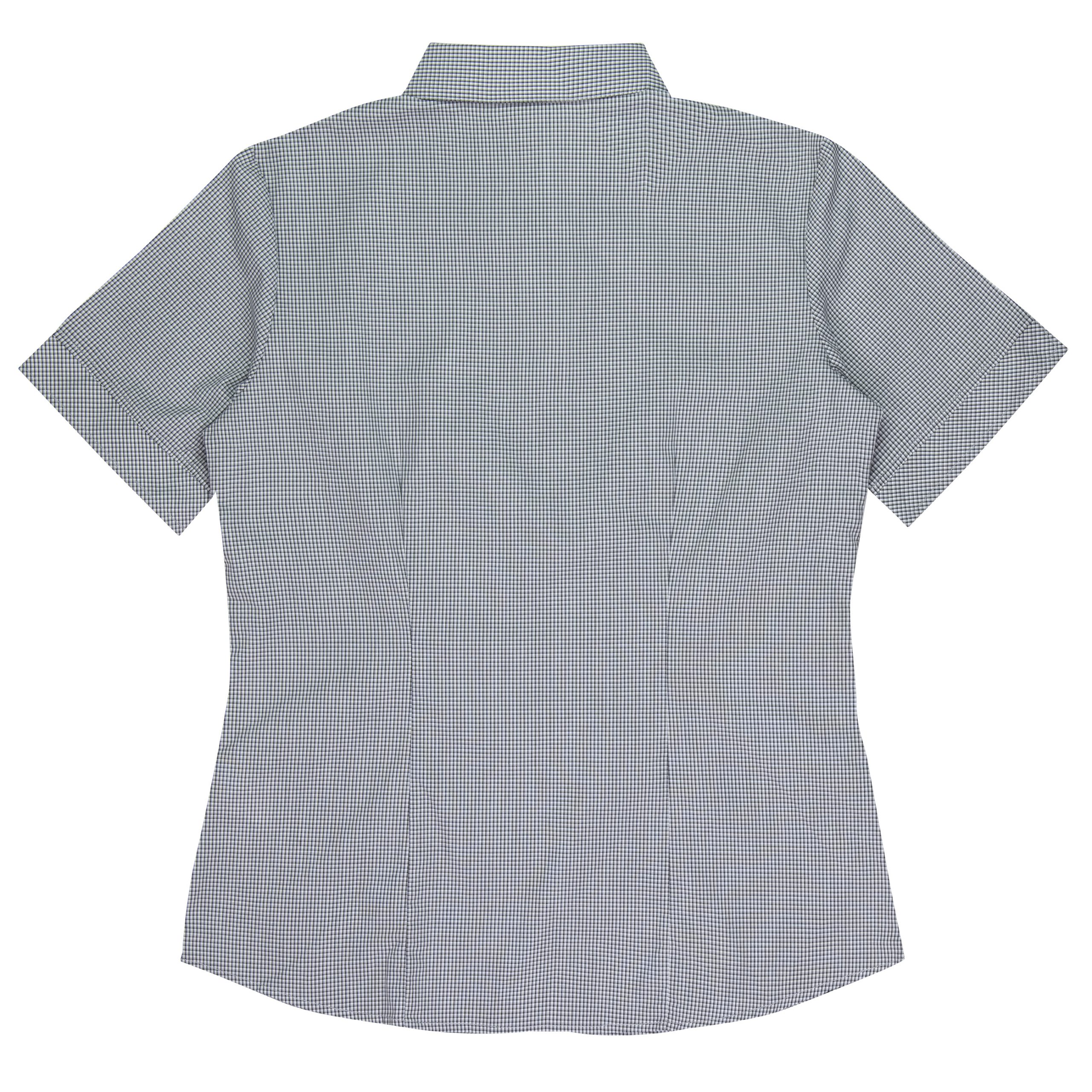 This smart mini-check has a bias cut pleated placket with a hidden Magic Button