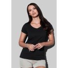 Modern T-shirt for women, with fashionable length and wide V-neck drop made of extra smooth combed ring-spun cotton.